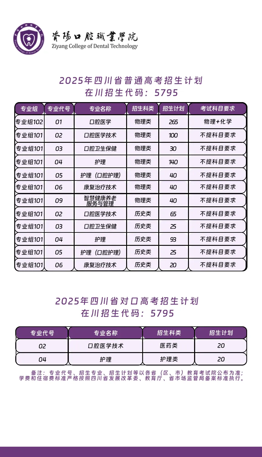 权威发布!资阳口腔职业学院2025年统招报考指南(附全国招生计划)