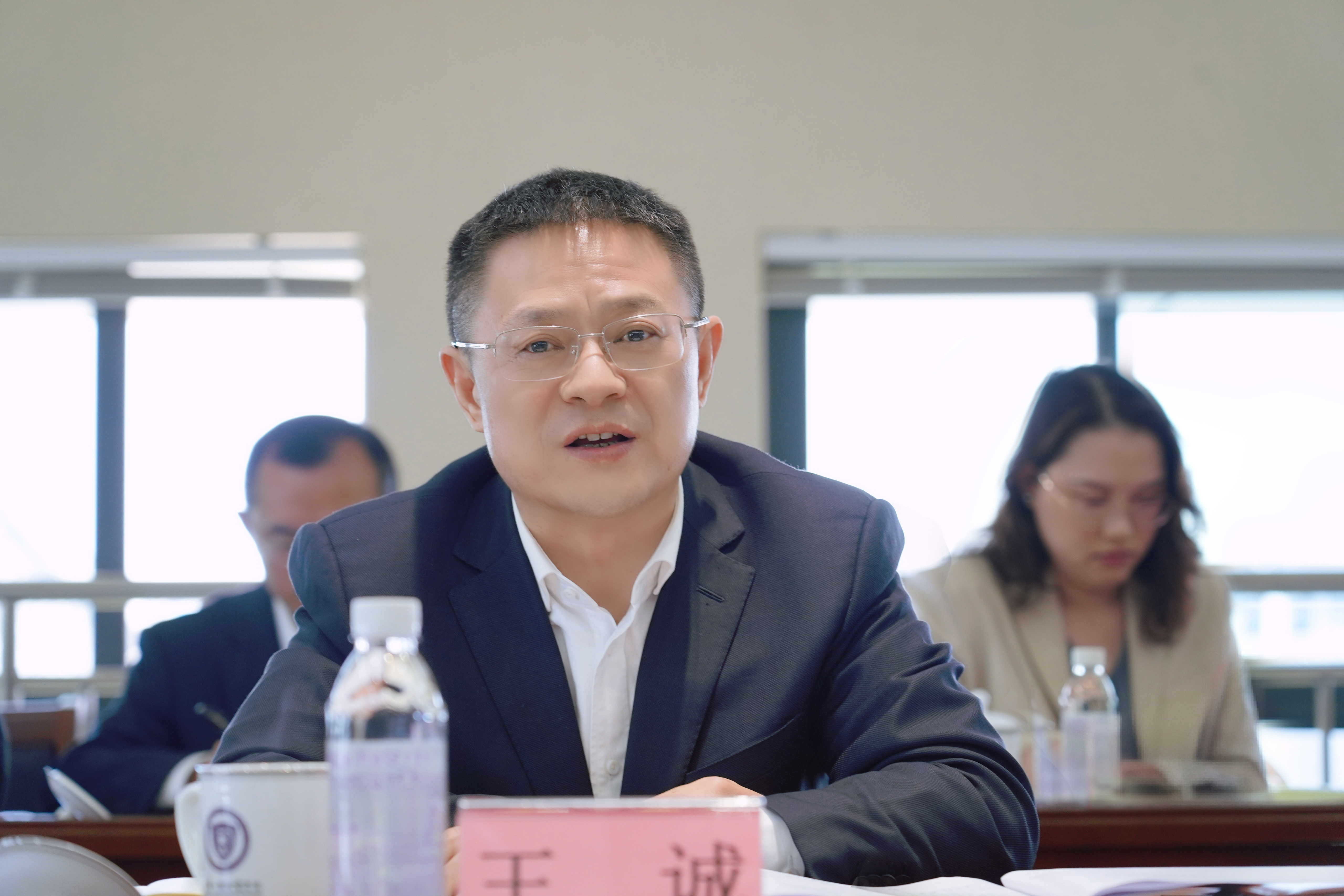 王诚一行先后到实训楼、教学督导中心、党员活动室,了解学院在专业建设、人才培养、产教融合等方面的情况,并进行了座谈交流。