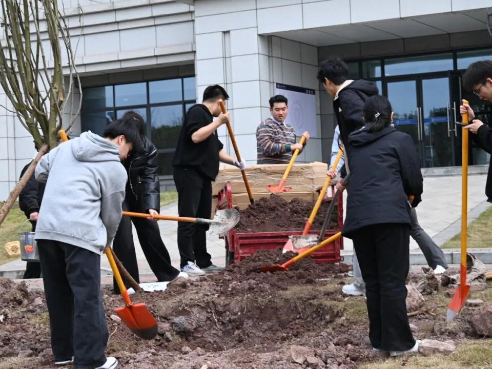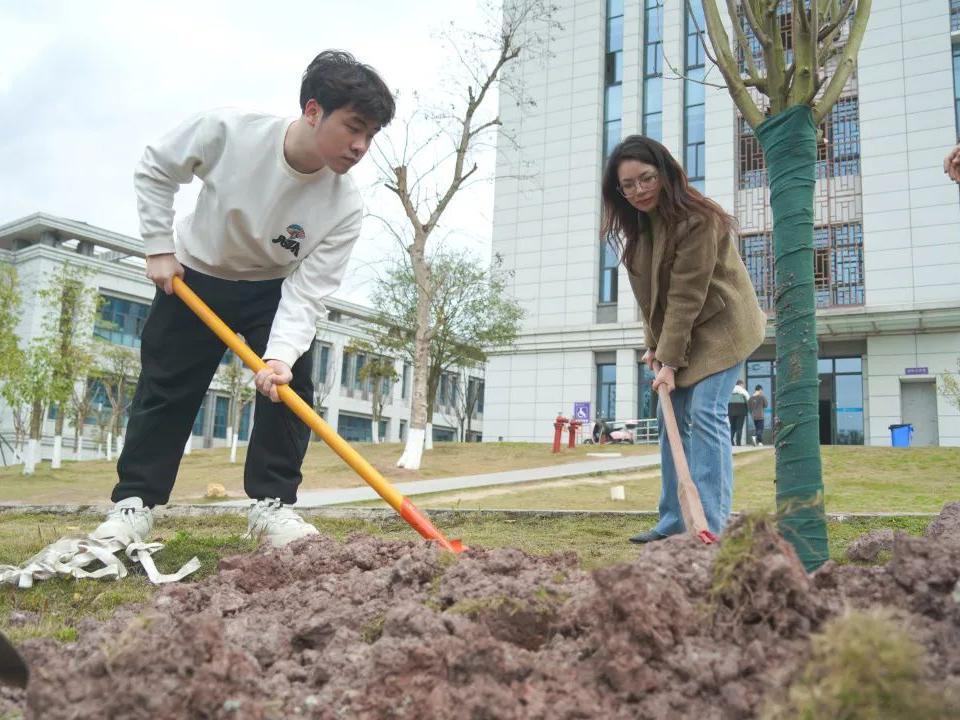 3月12日,学院团委组织开展了以“不负春光、为绿充“植””为主题的校园植树活动。学院领导班子以身作则,率先垂范挥锹培土;全体教职工热情高涨,默契配合;学生代表协作栽种,干劲十足;更有佳友物业工作人员热情参与。共计400余人齐聚一堂,共同参加了此次意义非凡的植树活动。
