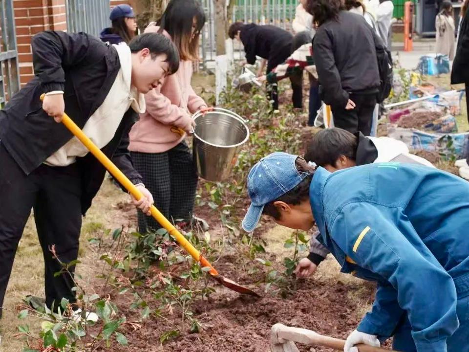 在挥锹铲土的辛勤劳作中,在提桶浇灌的悉心呵护下,师生们的行动如涓涓细流,汇聚成磅礴的绿色力量。每一株新苗都承载着对校园的深情厚谊,稳稳扎根,在春风中舒展身姿,让绿色的希望在校园的每一寸土地上蓬勃生长。