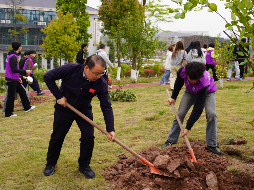 此次植树活动不仅美化了校园环境,也进一步增强了师生们的环保责任感和集体凝聚力。学院将持续开展形式多样的生态文明教育活动,让绿色成为校园生活的鲜明底色,助力师生像树木一样向下扎根、向上生长。