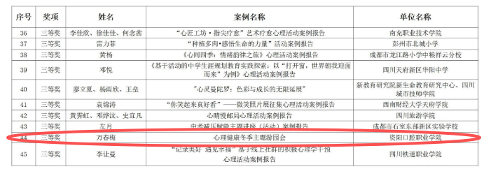 心理健康教育中心游园会系列活动喜获四川省“优秀心理活动案例”三等奖