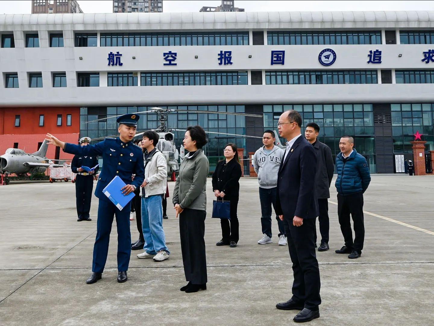 在成都航空职业技术学院党委常委、组织部部长邹勇,军士管理学院院长梁潘陪同下,我院交流组实地考察了飞机维修国家级实训基地、无人机技术应用中心等教学场所,深入了解该校"产教融合、工学一体"的专业建设模式。