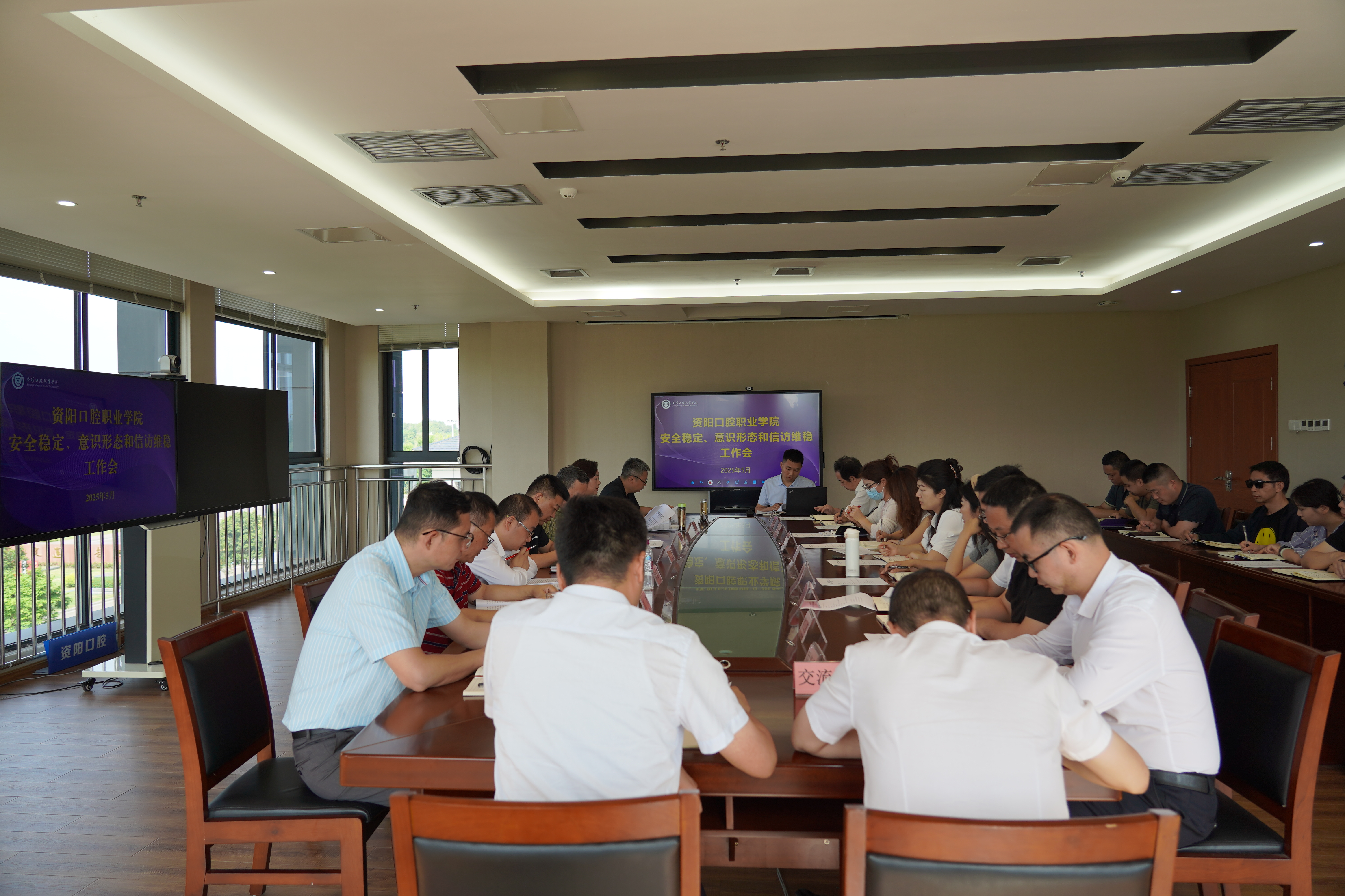 为强化安全管理,维护校园和谐稳定,5月8日,学院召开安全稳定、意识形态和信访维稳工作会。学院领导班子出席会议,各部系负责人、佳友物业服务中心管理人员、各部系安全专员参加。学院党委委员、工会副主席曹华主持会议。