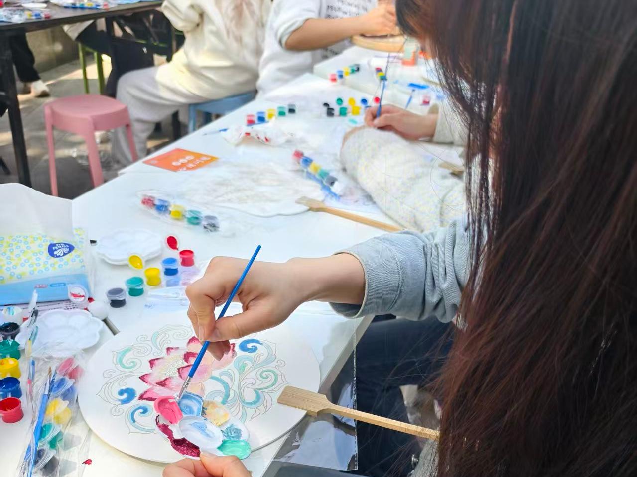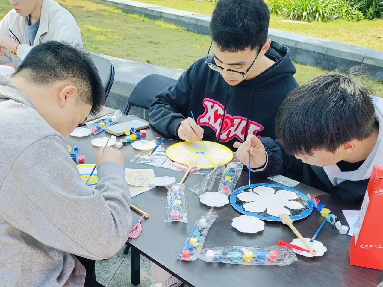 本次活动以“艺术表达+传统文化”为主线,精心设置了四大互动区域。在敦煌藻井团扇涂色DIY体验区,同学们执笔绘扇,在传统纹样的勾勒与色彩填充中静心凝神,感受艺术创作带来的情绪疗愈。心理知识互动问答区通过趣味竞答的方式,普及心理健康常识,提升学生的心理素养。“心语心愿”留言墙上,学生们写下对未来的期许与内心的感悟,在文字中完成一次温柔的自我对话。心理中心招新宣传区则为有意愿投身心理助人工作的同学提供了了解与加入的渠道。四大板块环环相扣,让学生在沉浸式体验中实现情感表达与心灵成长,真正实现了传统文化与心理育人的有机融合。