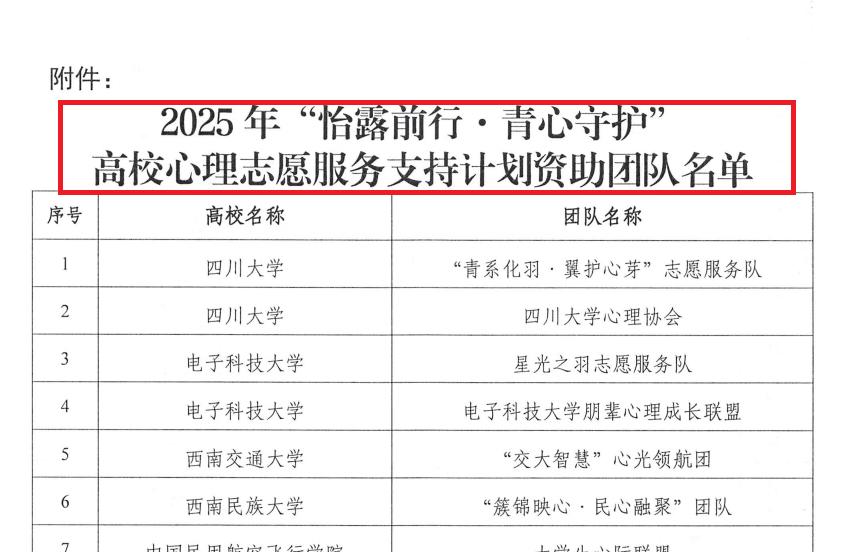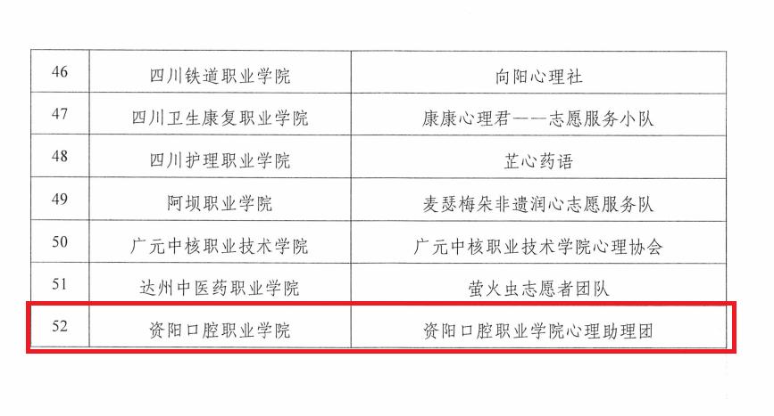资阳口腔职业学院心理助理团成功入选 2025年四川省高校心理志愿服务支持计划