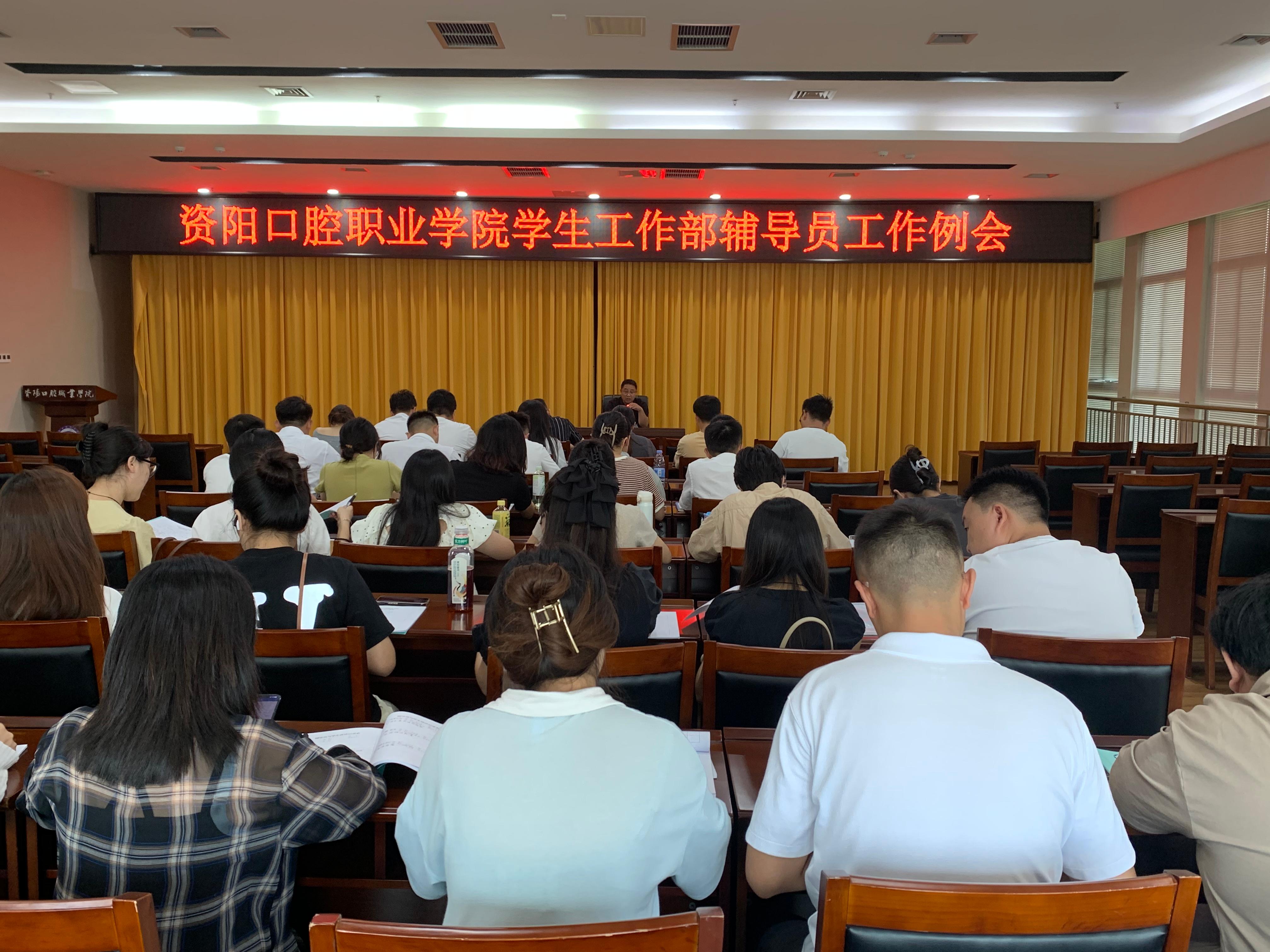 为推动我院各项学生工作高质量发展,落实立德树人根本任务,2024年9月23日下午,资阳口腔职业学院学生工作部在综合楼二楼会议室召开辅导员工作例会。学生工作部部长许宏君、各系部学工专员和全体辅导员参加此次会议。会议由学生工作部部长许宏君主持。