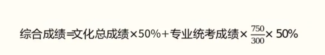 答:使用省级专业统考成绩作为专业考试成绩的艺术类专业,在考生高考文化成绩(含录取照顾政策加分)、省级专业统考成绩分别达到我省录取控制分数线后,根据考生综合成绩排序确定位次。综合成绩计算公式: