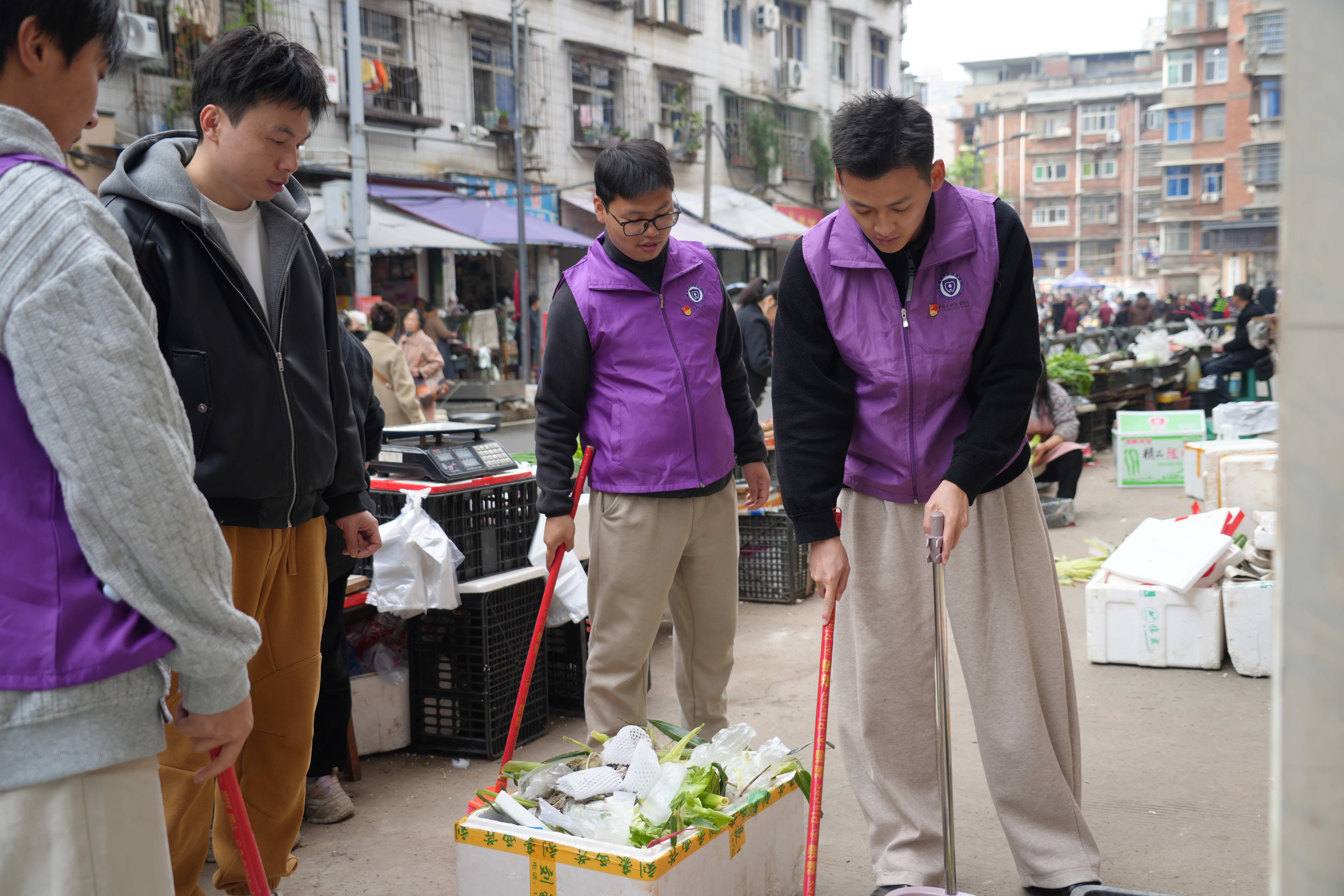 活动现场,志愿者们身着统一的紫色志愿马甲,手持扫帚、垃圾夹等清洁工具,对社区街巷、农贸市场周边区域的生活垃圾、落叶杂物进行了全面清扫。大家分工协作、干劲十足,不放过一处卫生死角,用实际行动改善社区人居环境,赢得了社区居民的一致好评。