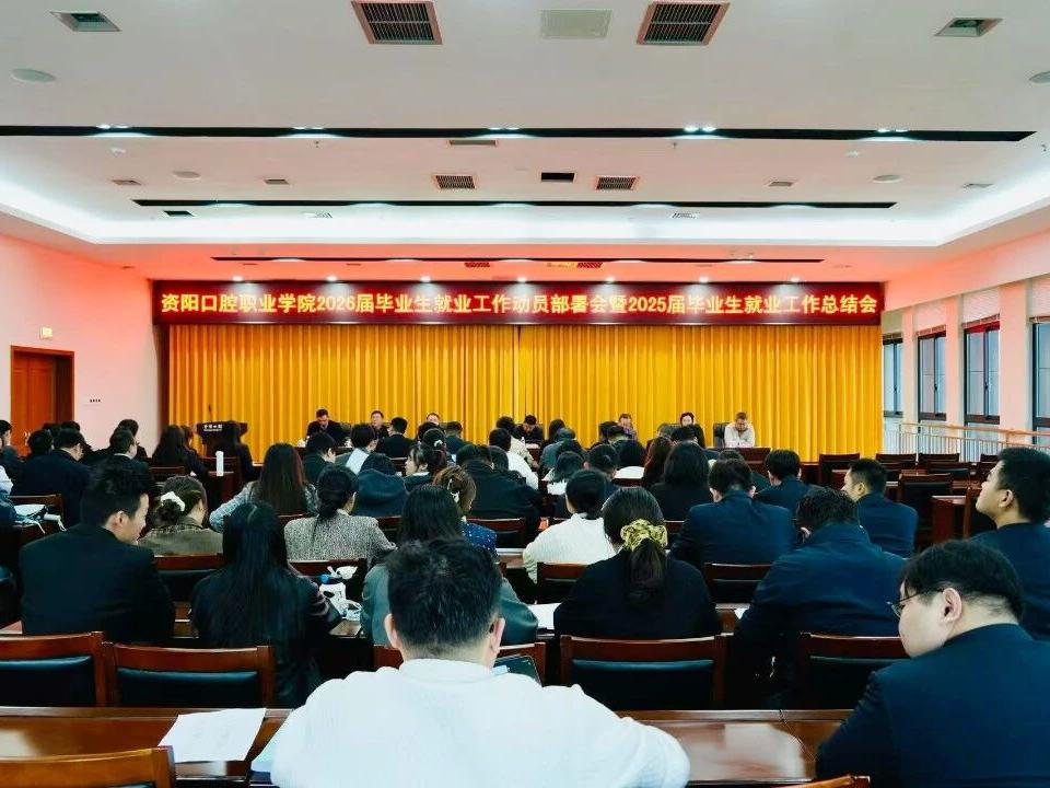 10月29日,资阳口腔职业学院召开2026届毕业生就业工作动员部署会暨2025届毕业生就业工作总结表彰会。学院领导班子、各部系负责人、学工组组长、招就办工作人员、全体辅导员及就业指导教师参加。会议由副院长刘洪主持。